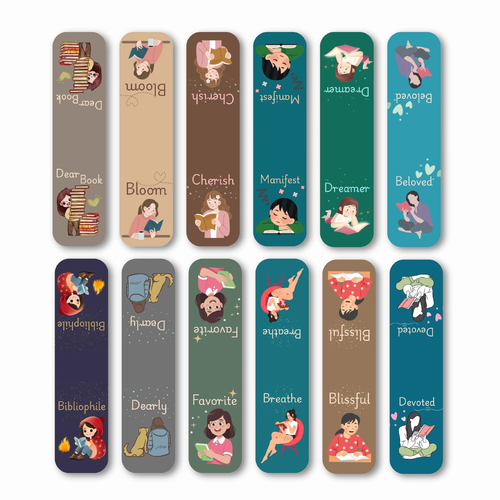 - Set Includes: 12 unique magnetic bookmarks with adorable artwork and uplifting messages like “Dreamer,” “Beloved,” and “Blissful”